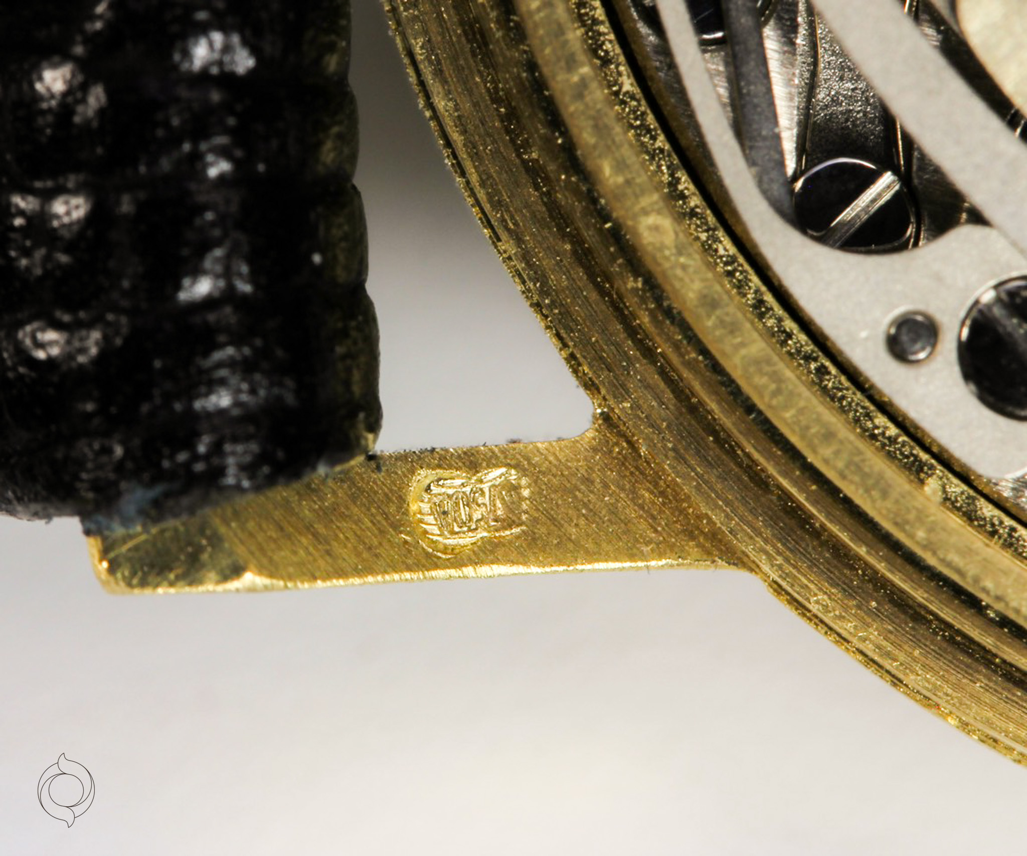 Black leather strap with gold-plated pin buckle (the watch can be supplied with a different or additional strap)