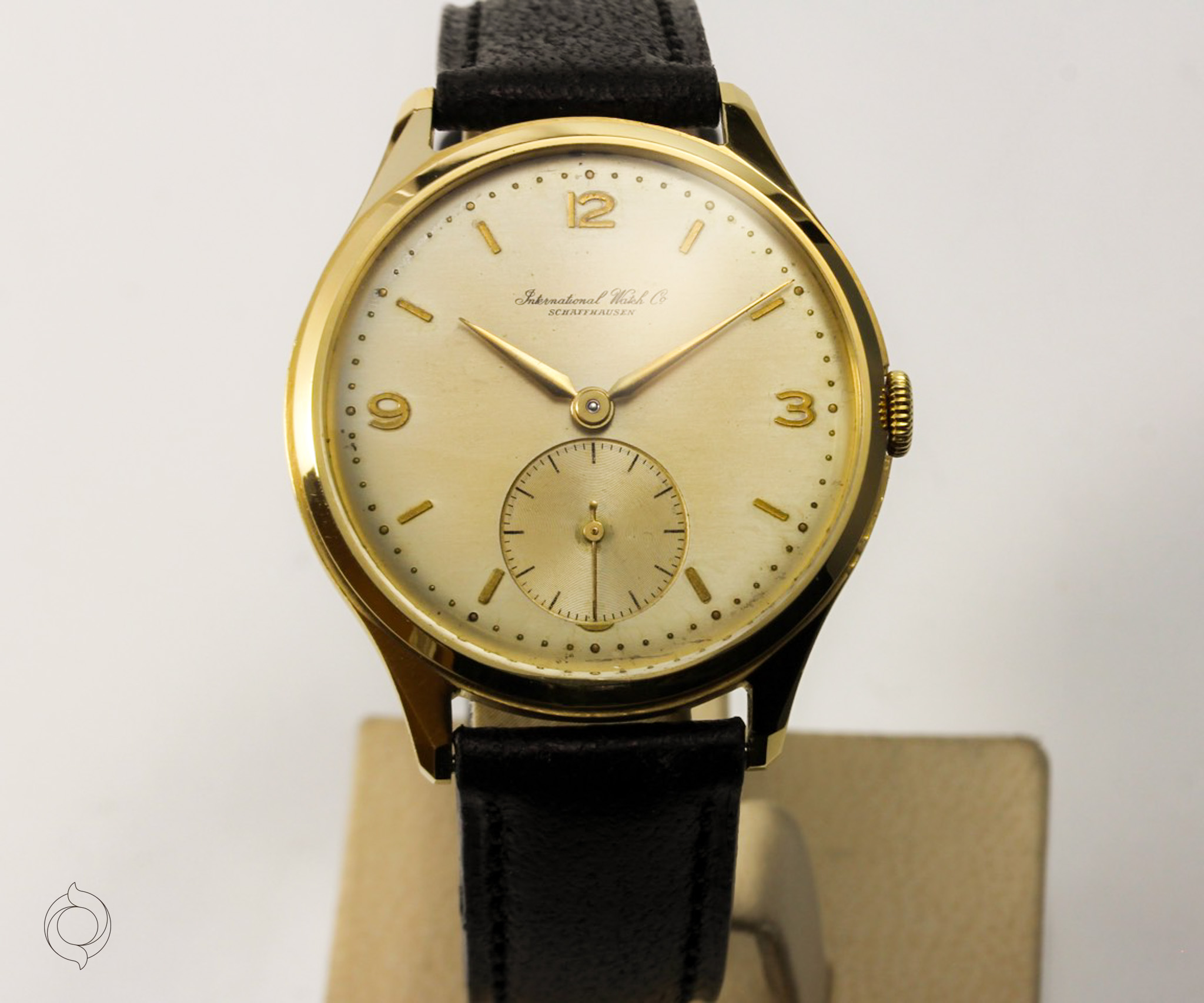 Very rare IWC Dresswatch large 18K gold case 36 mm, manual winding caliber 88, manufacture 1951, untreated original very good condition! dial, case and movement are signed IWC Accessories: WARRANTY CARD, SCHÖNE SAMMLERUHREN certificate of authenticity, documentation and SCHÖNE SAMMLERUHREN watch box