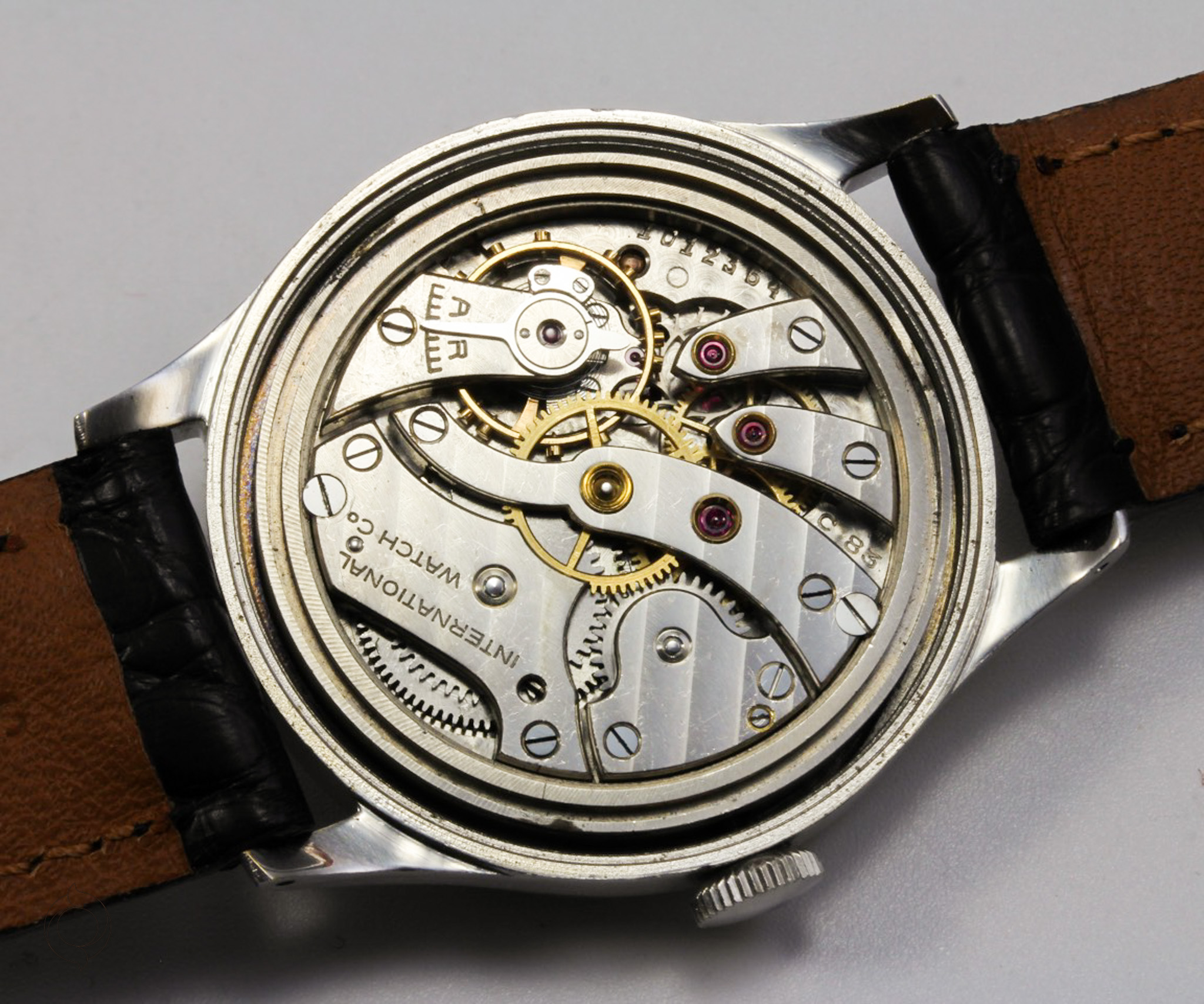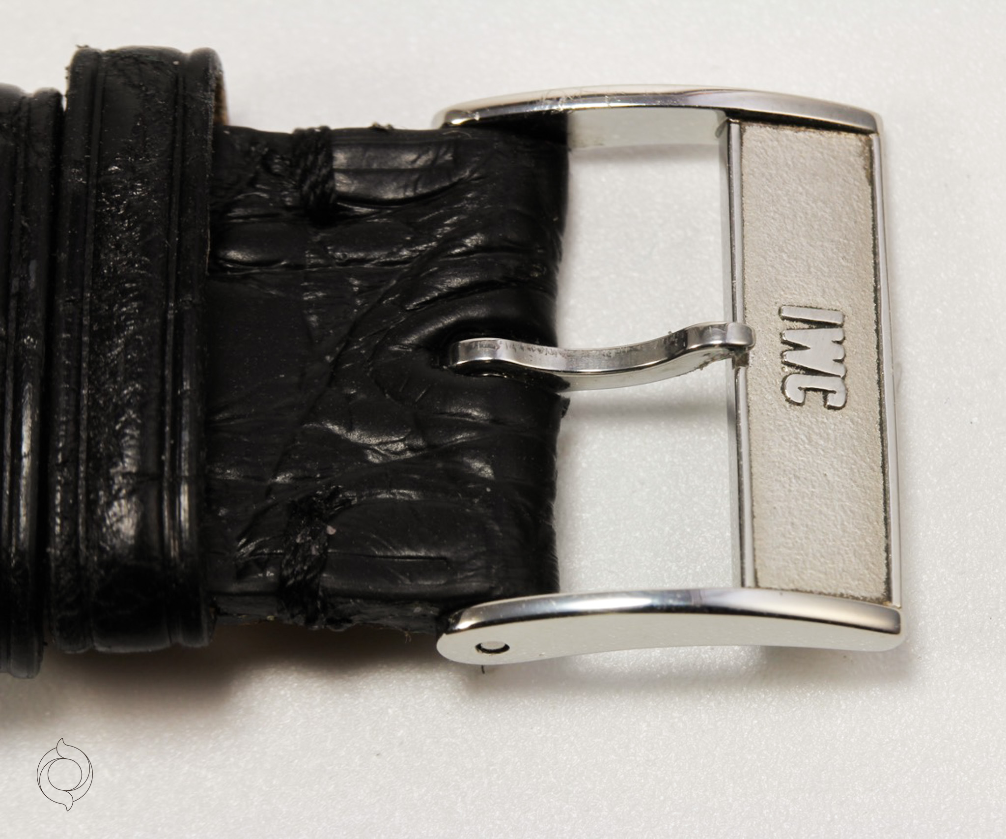 Black leather strap with original IWC pin buckle (the watch can be supplied with a different or additional strap)