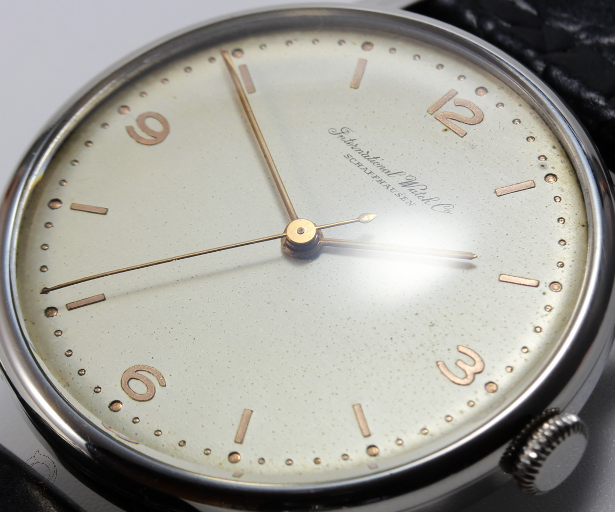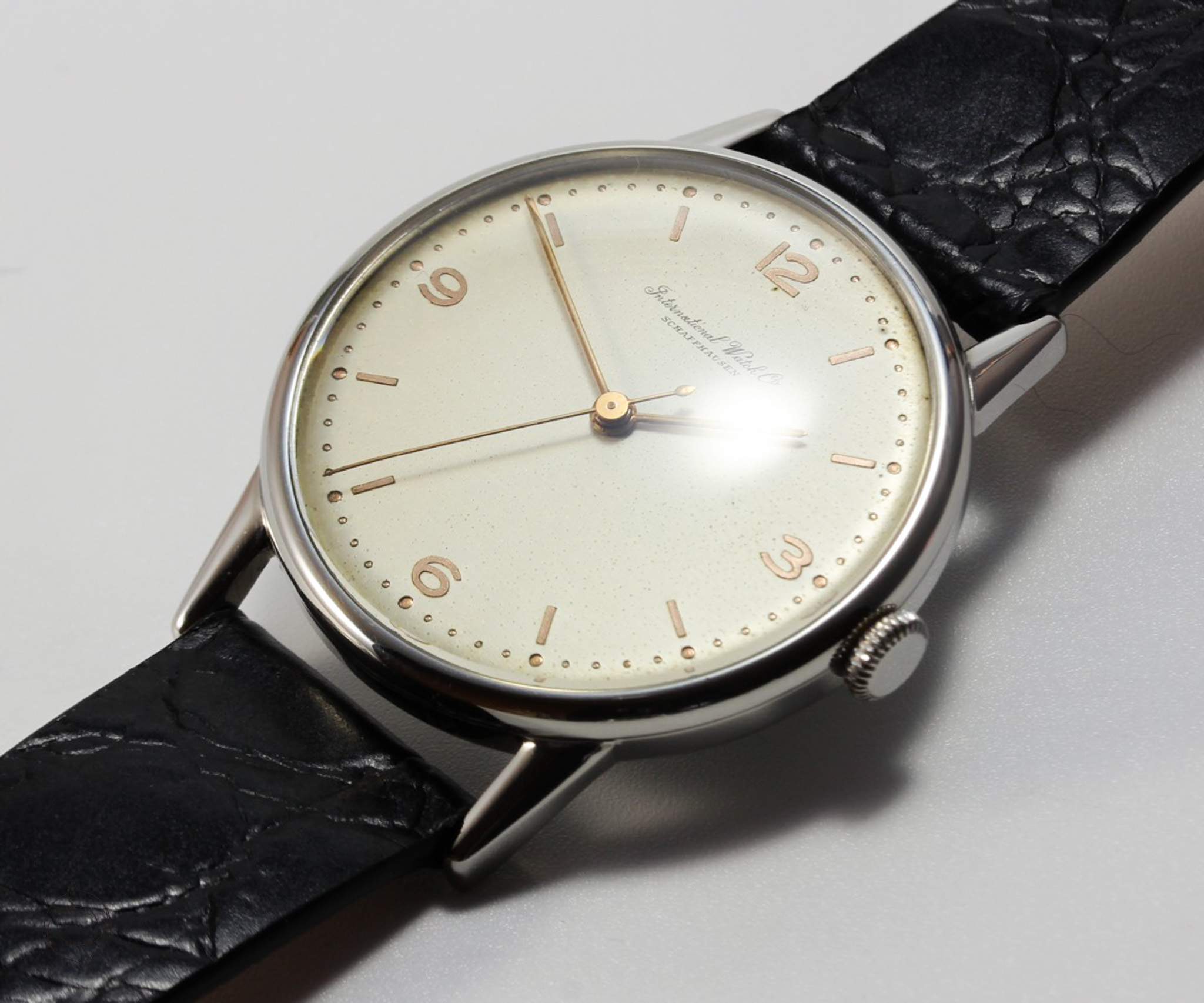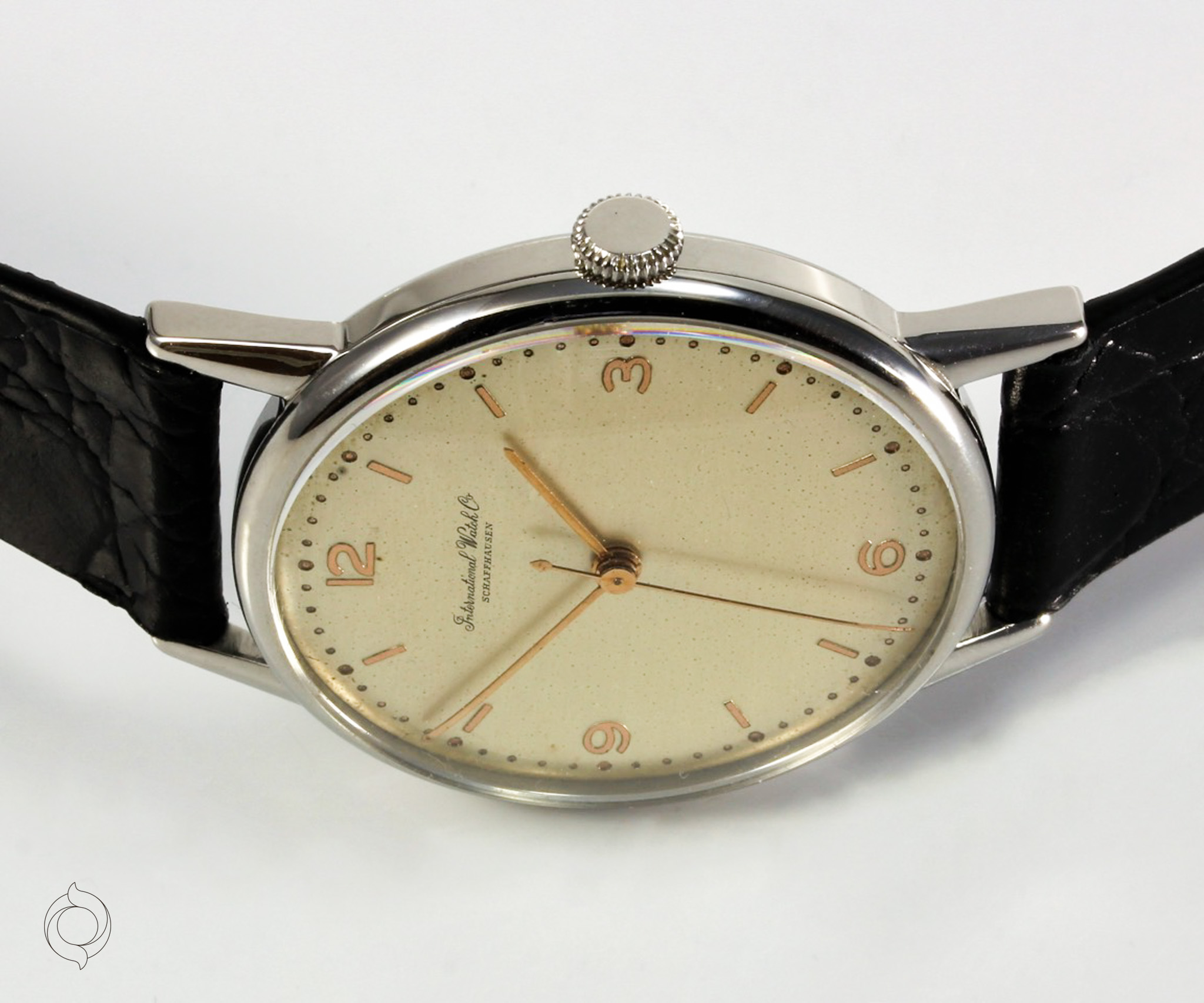 Elegante klassische IWC Anzuguhr Edelstahl Gehäuse, schön gestreckte Bandanstöße, Handaufzug Kaliber 89, Herstellung 1951, unbehandelt original sehr gut erhalten! Zifferblatt, Gehäuse und Werk sind IWC signiert Zubehör: GARANTIEKARTE, SCHÖNE SAMMLERUHREN Echtheitszertifikat, Dokumentation und SCHÖNE SAMMLERUHREN Uhrenbox