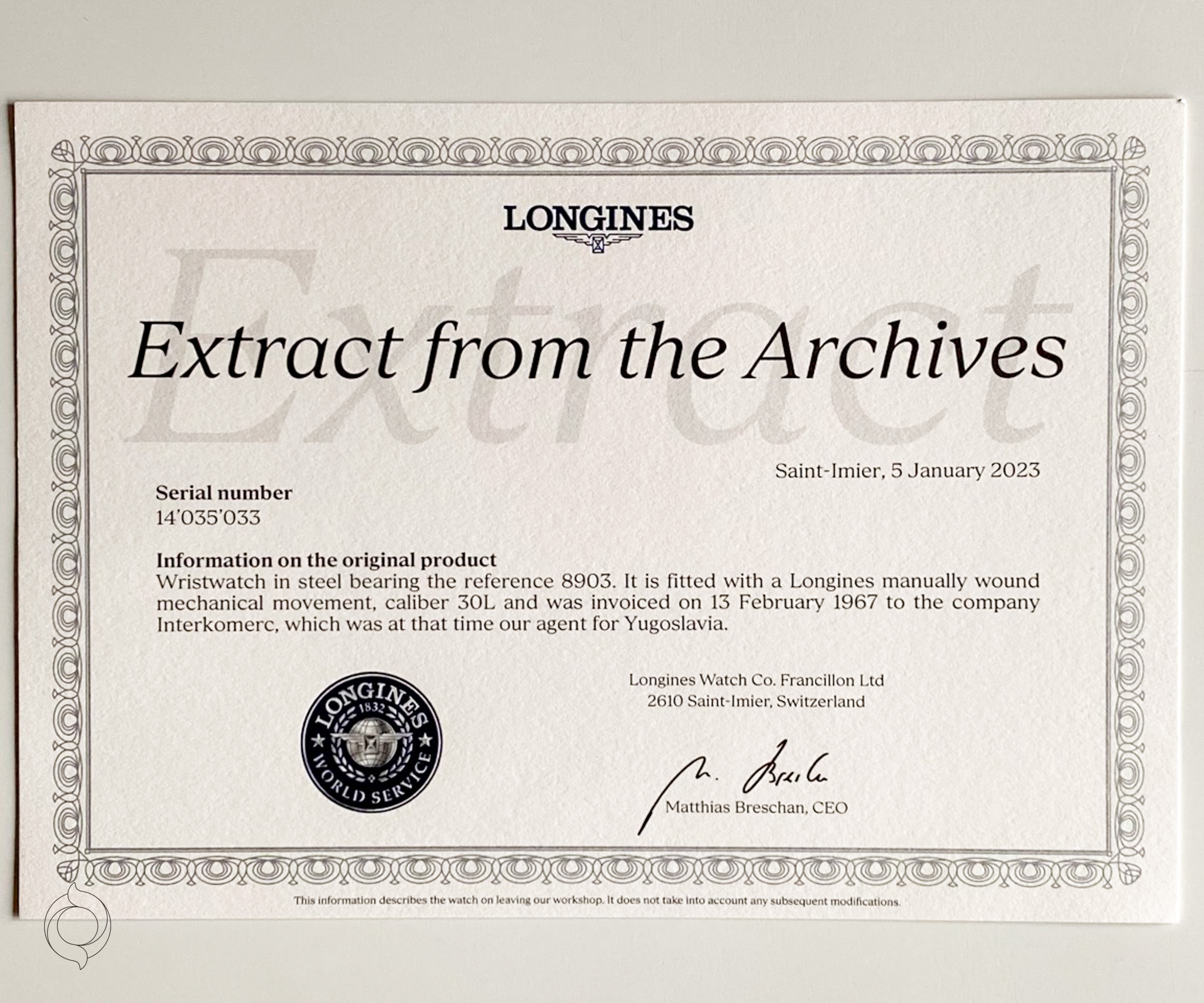 Excellent, LONGINES archive excerpt