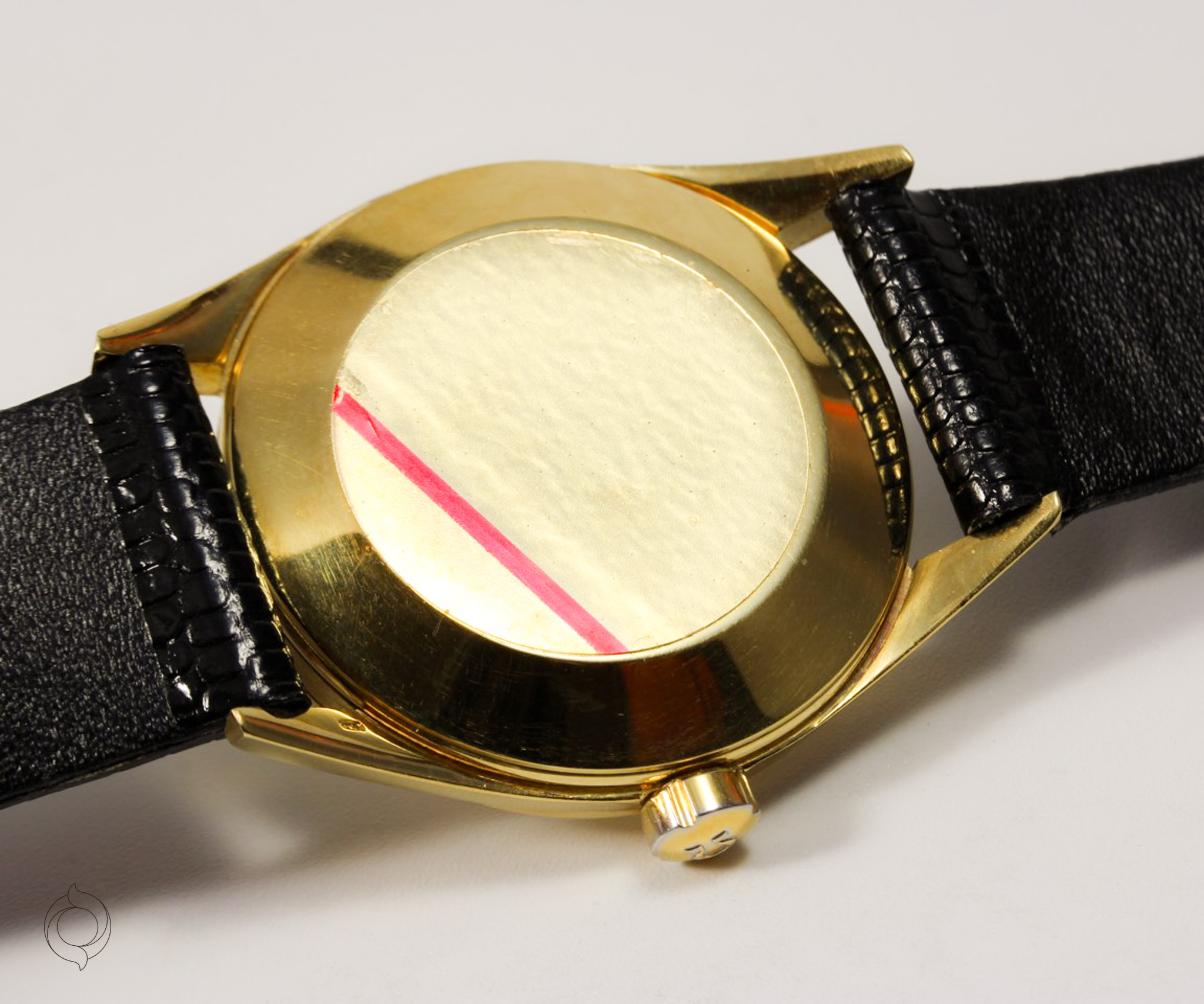 Rare OMEGA automatic watch 18K gold case, guilloché dial, TÜRLER signed, gold hallmark on lug, weight 40 g, automatic caliber 471, manufactured 1954, untreated original excellent condition! Dial, case, movement and crown are signed Omega Accessories: WARRANTY CARD, SCHÖNE SAMMLERUHREN certificate of authenticity, documentation and SCHÖNE SAMMLERUHREN watch box