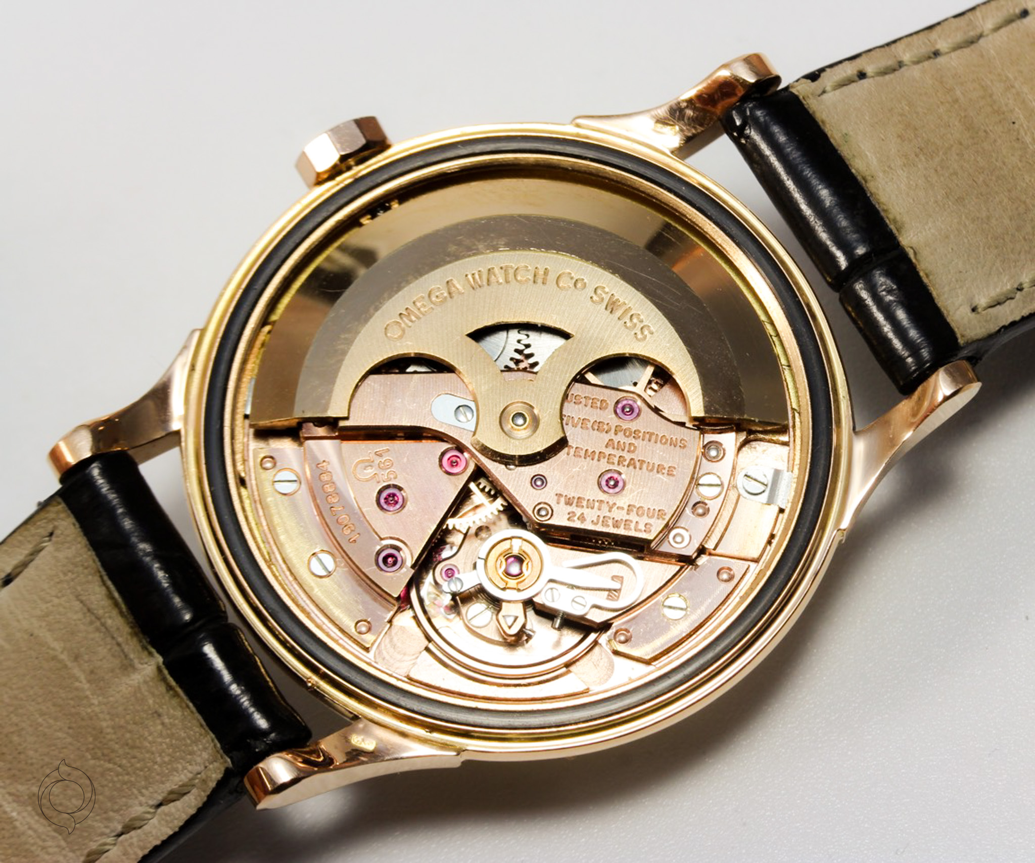Black leather strap with rose gold-plated Omega pin buckle (the watch can be supplied with a different or additional strap)