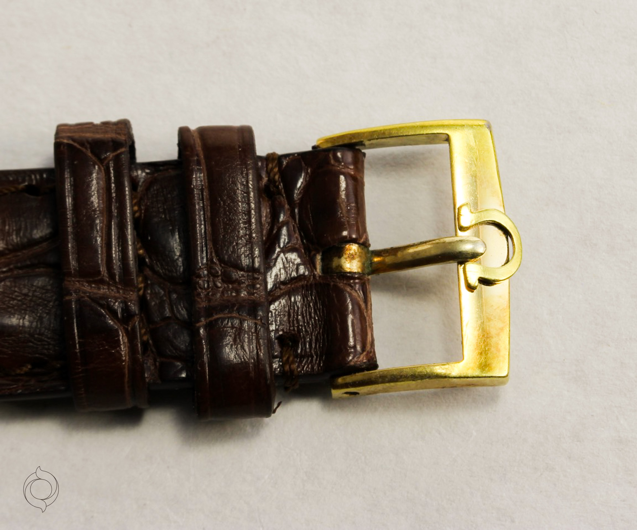 Dunkelbraunes OMEGA Kroko-Lederband mit vergoldeter OMEGA Schließe
