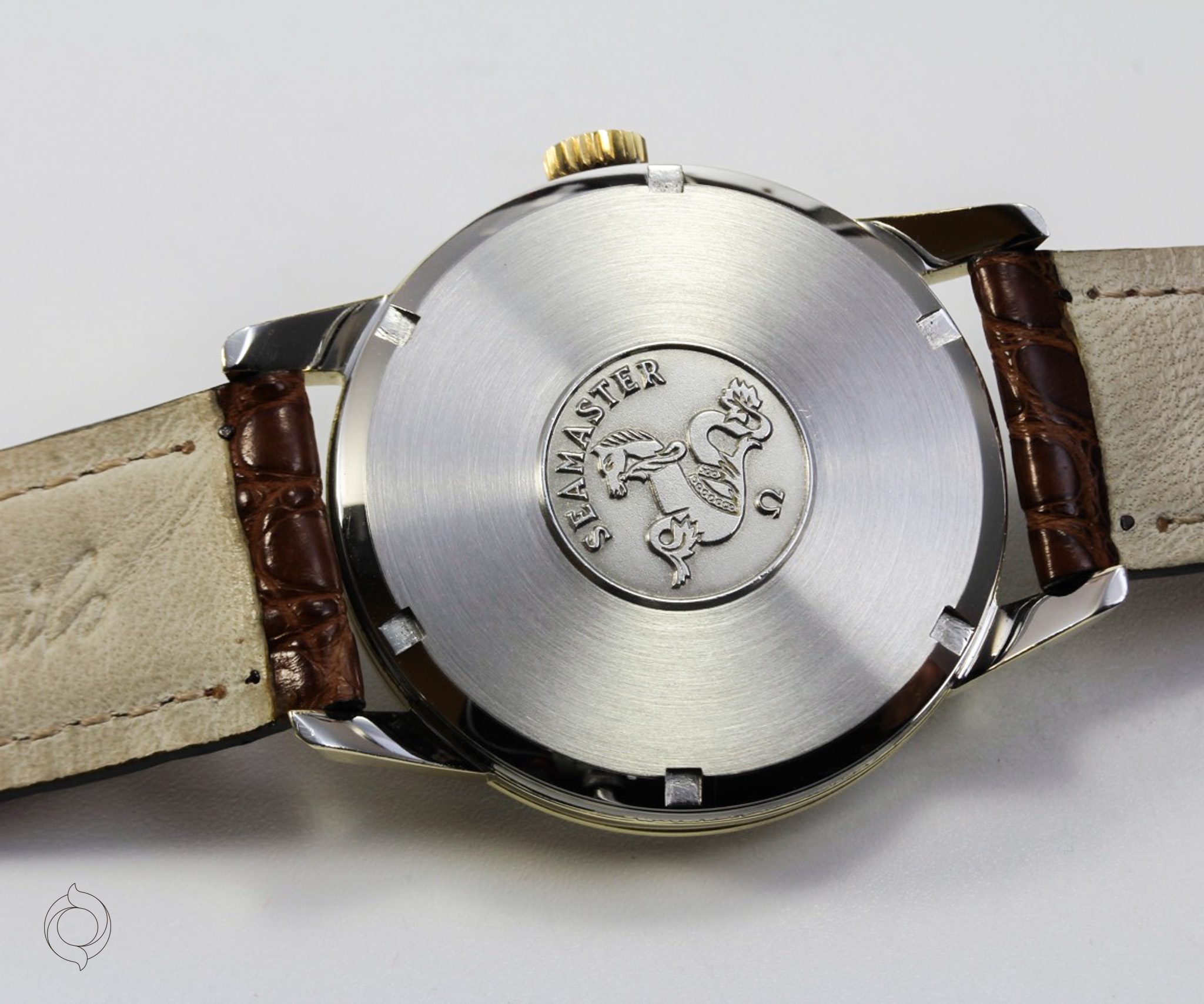 Beautiful OMEGA Seamaster Gold steel case, screwed back with Seamaster logo, gilt dial, manual winding caliber 286, manufacture 1960, untreated original excellent condition, like NOS! Dial, case, movement, crown and clasp are signed Omega Accessories: WARRANTY CARD, SCHÖNE SAMMLERUHREN certificate of authenticity, documentation and SCHÖNE SAMMLERUHREN watch box